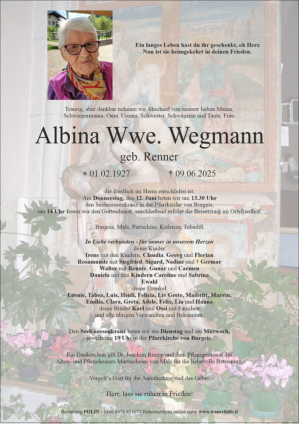 um 14 Uhr feiern wir den Gottesdienst; anschließend erfolgt die Beisetzung im Ortsfriedhof.