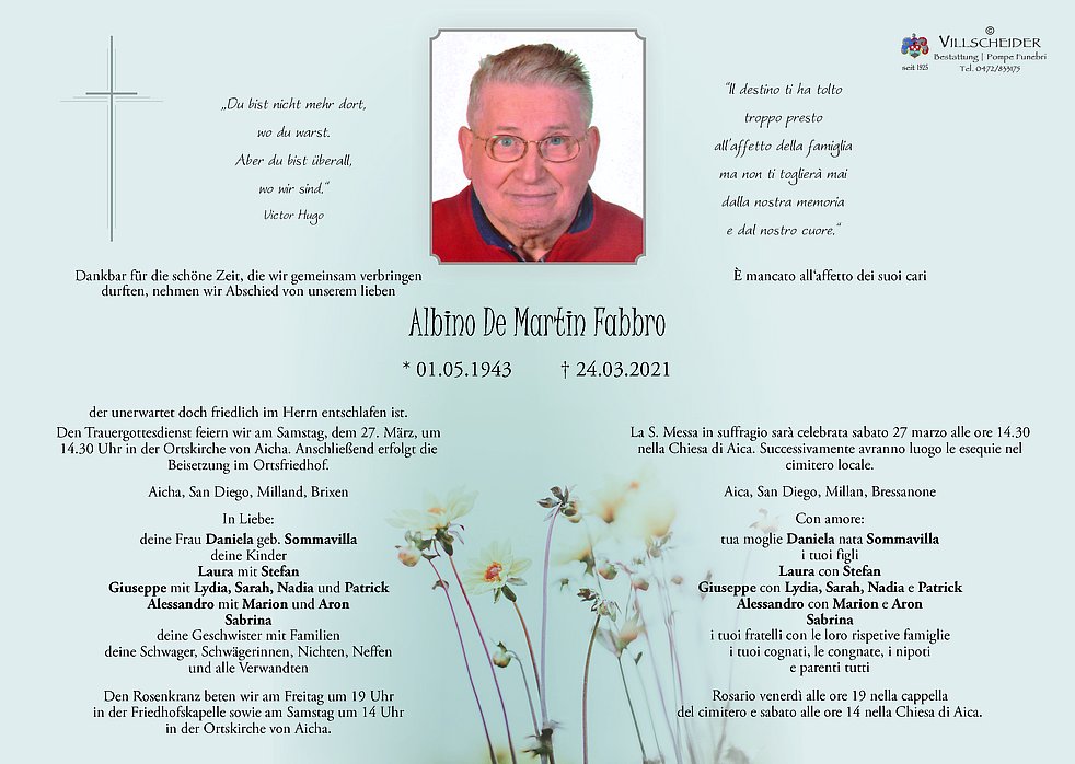 Begräbnisgottesdienst: 27.03. - 14:30 Uhr Aicha