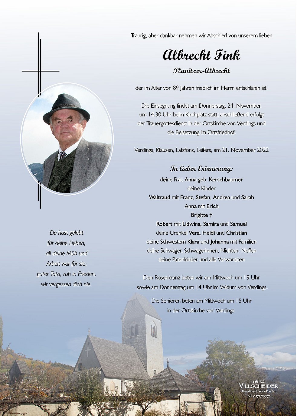 Begräbnisgottesdienst: 24.11. - 14:30 Uhr Verdings