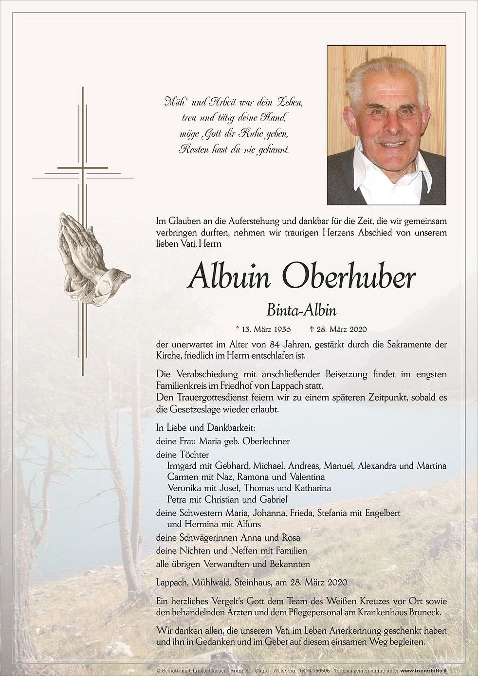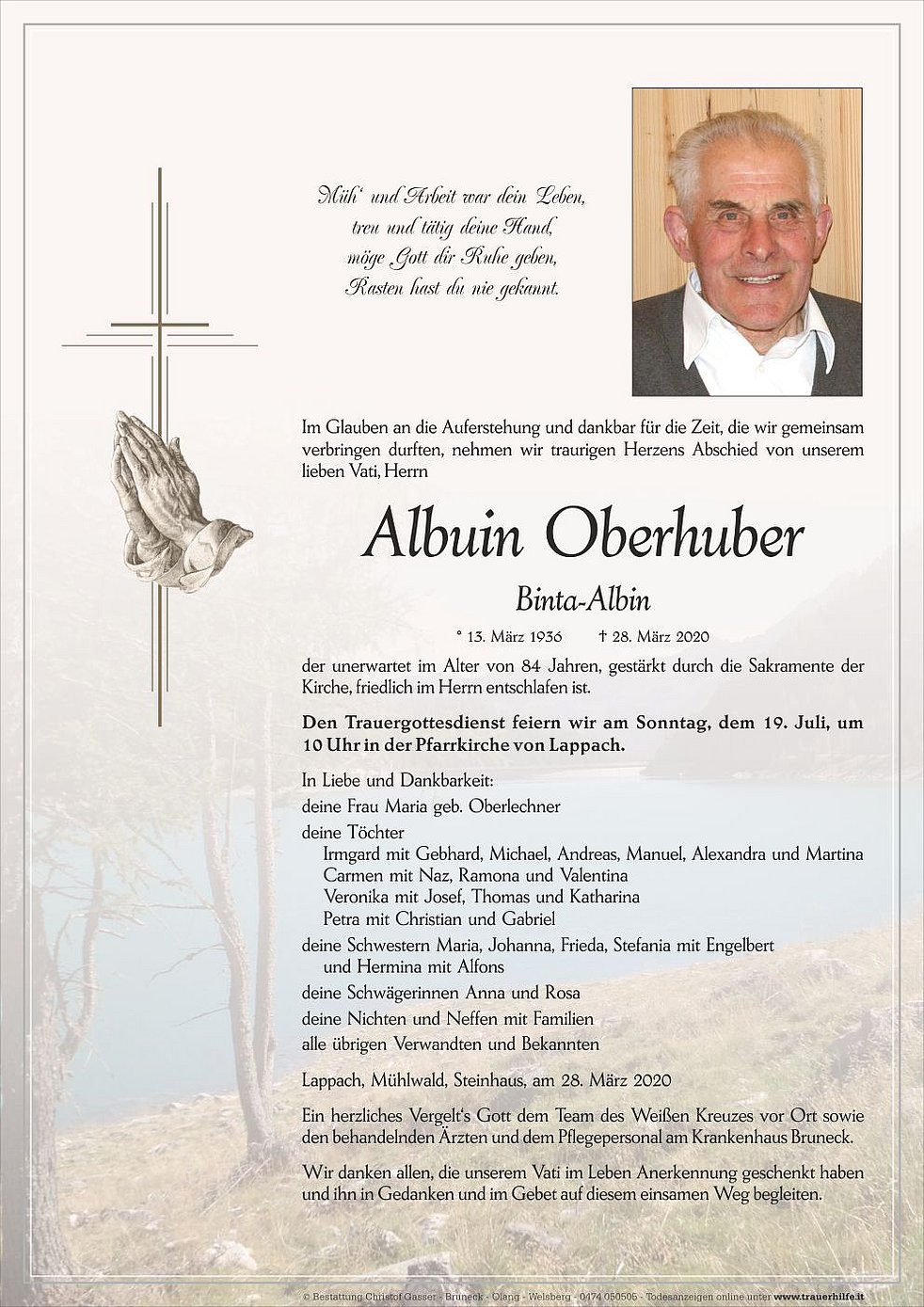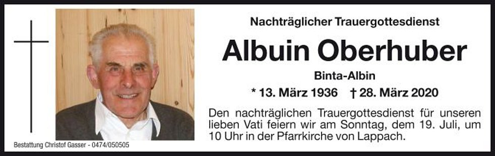 Den nachträglichen Trauergottesdienst feiern wir am Sonntag, dem 19. Juli, um 10 Uhr in der Pfarrkirche von Lappach.