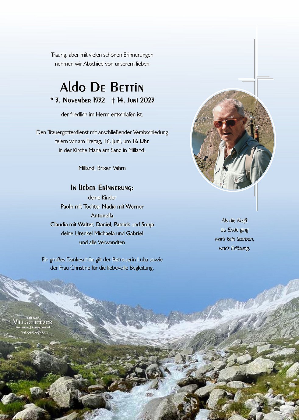 Die Nachricht vom Tod deines lieben Vaters hat mich sehr getroffen. Ich spreche dir liebe Antonella, und allen Angehörigen mein tief empfundenes Beileid aus.Wir reichen euch die Hand zum stillen Gruß und bleiben stehts mit euch verbunden.