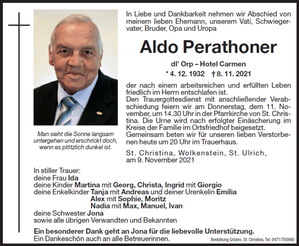 Den Trauergottesdienst mit anschließender Verabschiedung feiern wir am Donnerstag, dem 11. November, um 14.30 Uhr in der Pfarrkirche von St. Christina.