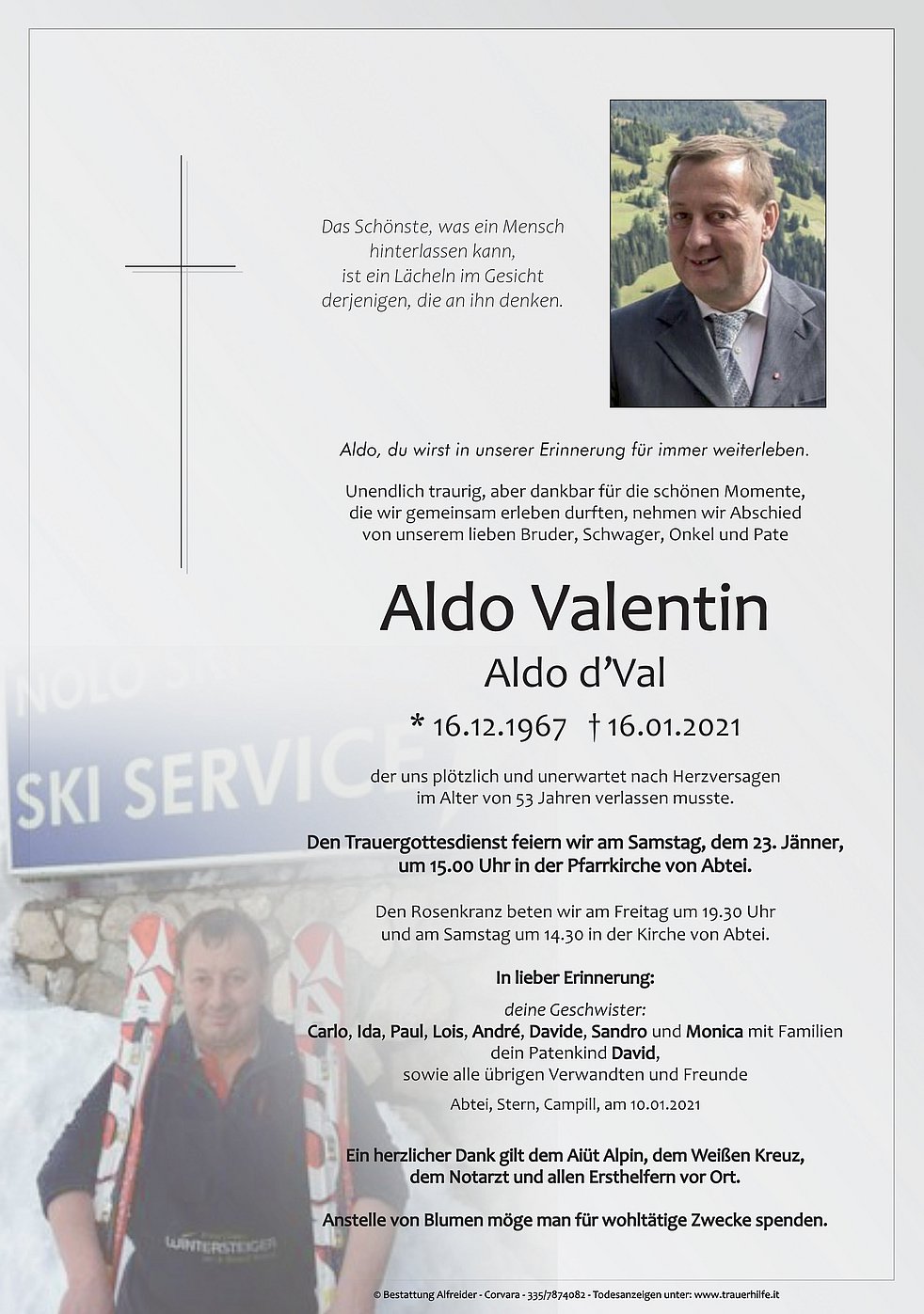 Den Trauergottesdienst feiern wir am Samstag, dem 23. Jänner,