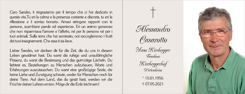 Du warst ein feiner Mensch... ich habe dich immer wieder gerne getroffen um ein ratschale zu machen. Gute reise sandro... irgndwonn ratschmo noa widdo...
