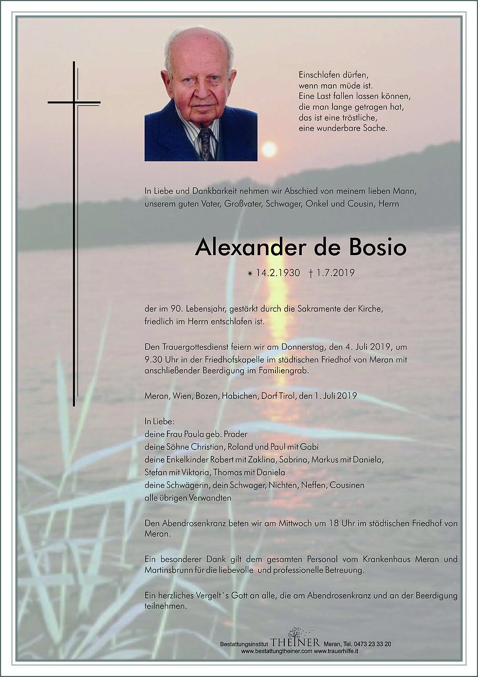 Den Trauergottesdienst feiern wir am Donnerstag, den 4. Juli 2019, um 9.30 Uhr in der Friedhofskapelle im städtischen Friedhof von Meran mit anschließender Beerdigung im Familiengrab.