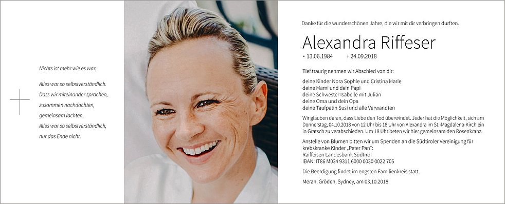 Herzliches Beileid den Angehörigen und ganz viel Kraft für deine Mädels.