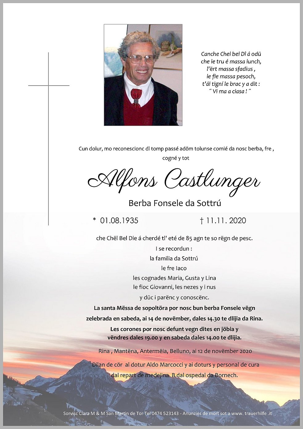 Ein besonderer Dank gilt dem Hausarzt Dr. Aldo Marcocci sowie den Ärzten und den gesamten Pflegepersonal der Abteilung Medizin B