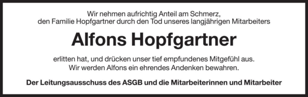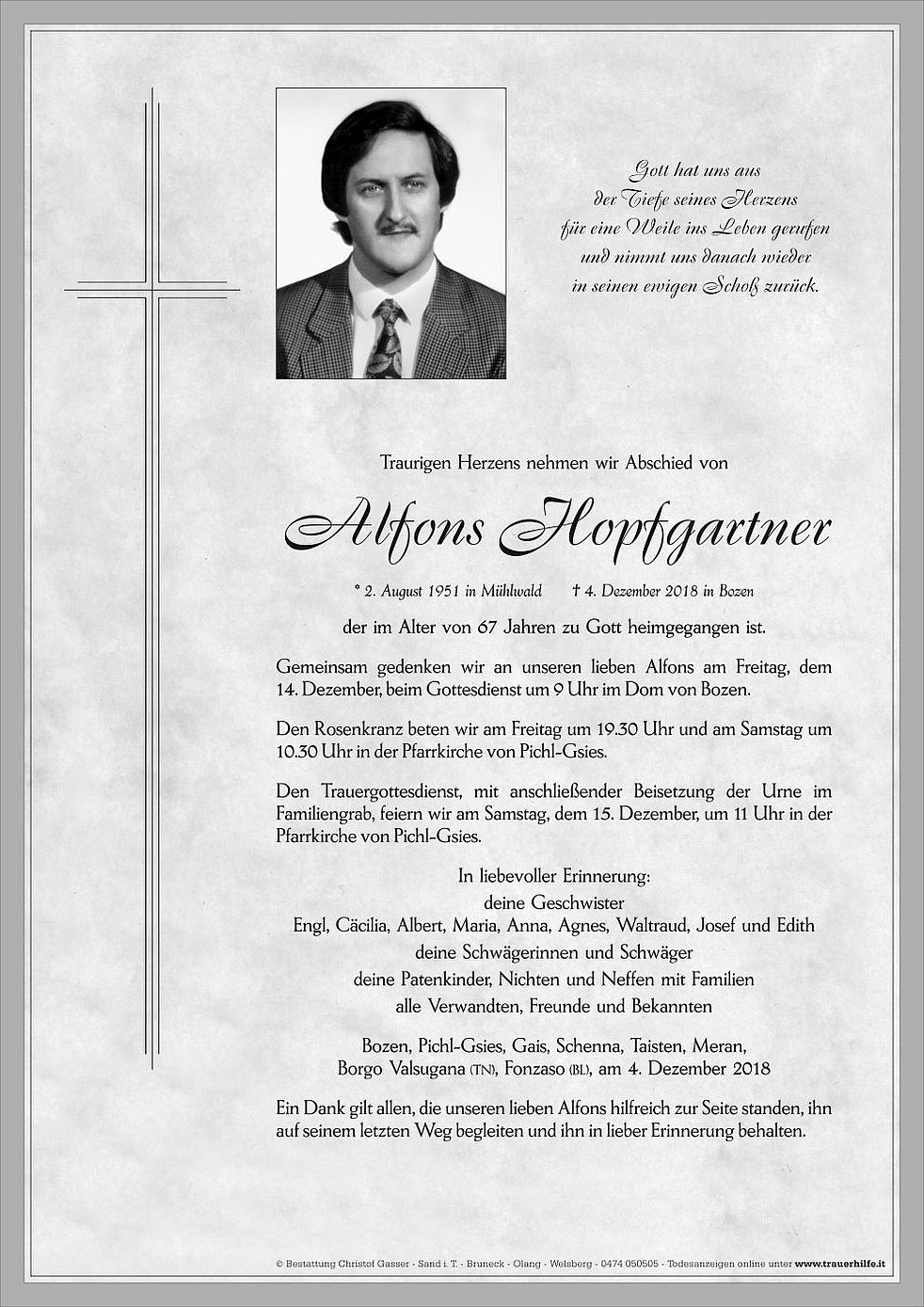 Ein Dank gilt allen, die unseren lieben Alfons hilfreich zur Seite standen, ihn auf seinem letzten Weg begleiten und ihn in lieber Erinnerung behalten.
