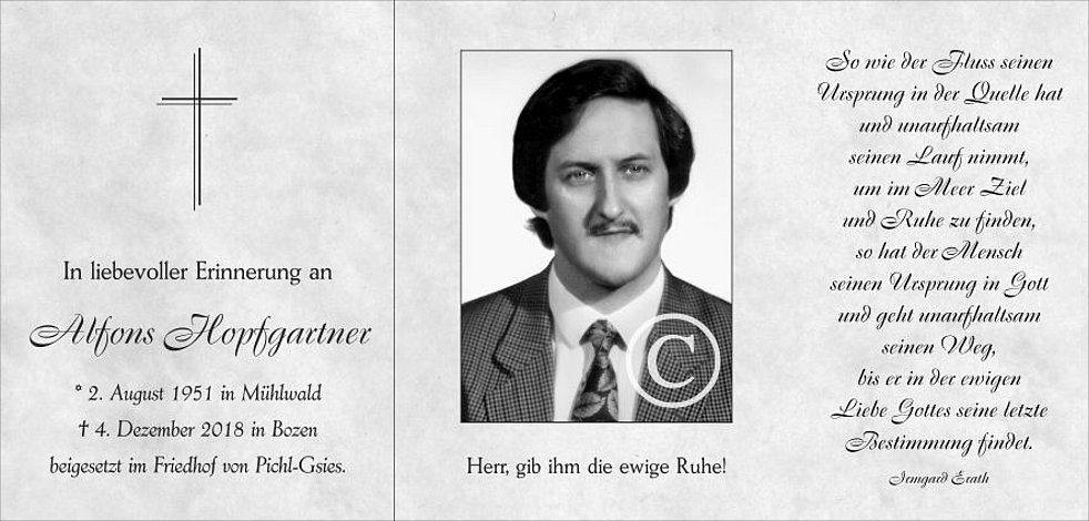 Gemeinsam gedenken wir an unseren lieben Alfons am Freitag, dem 14. Dezember, beim Gottesdienst um 9 Uhr im Dom von Bozen.