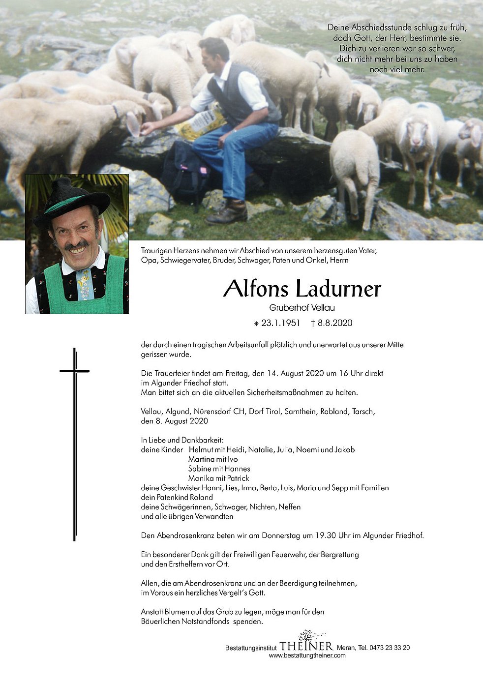 Die Trauerfeier findet am Freitag, den 14. August 2020 um 16 Uhr direkt im Algunder Friedhof statt.
