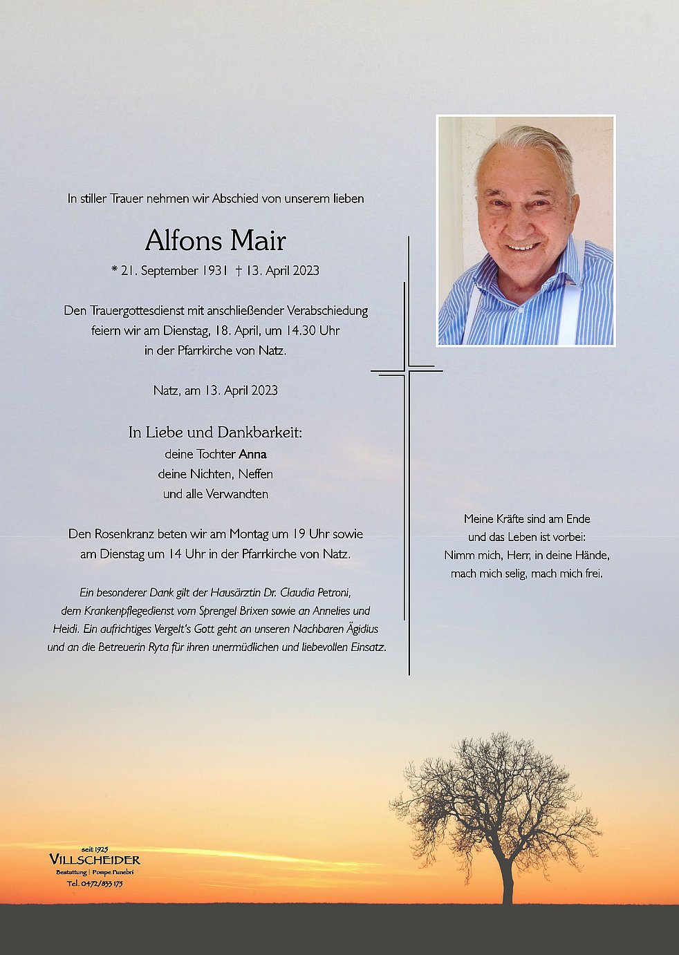 Trauerfeier: 18.04. - 14:30 Uhr Natz