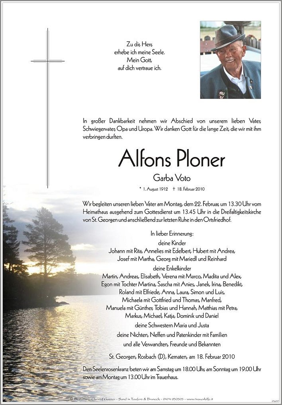Wir begleiten unseren lieben Vater am Montag, dem 22. Februar, um 13.30 Uhr vom Heimathaus ausgehend zum Gottesdienst um 13.45 Uhr in die Dreifaltigkeitskirche von St. Georgen und anschließend zur letzten Ruhe in den Ortsfriedhof.