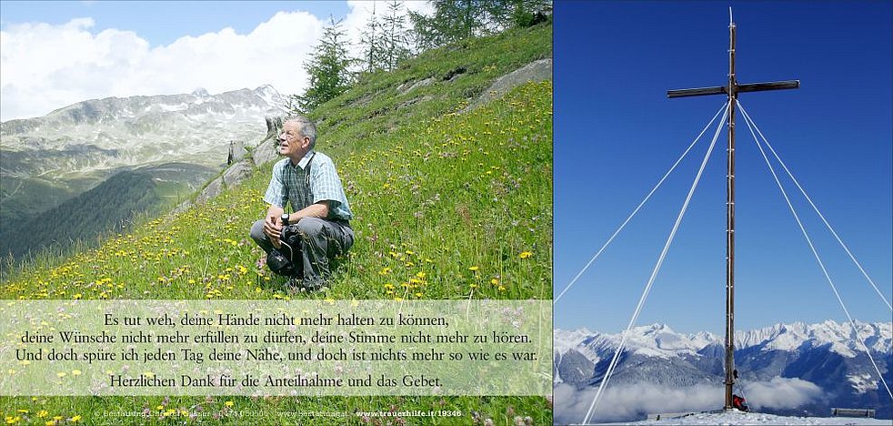 Ein besonderer Dank gilt dem Team vom Wohn- und Pflegeheim Bruneck sowie allen Ärzten, die ihn betreut haben.