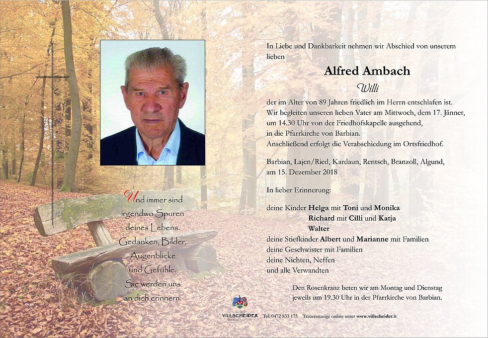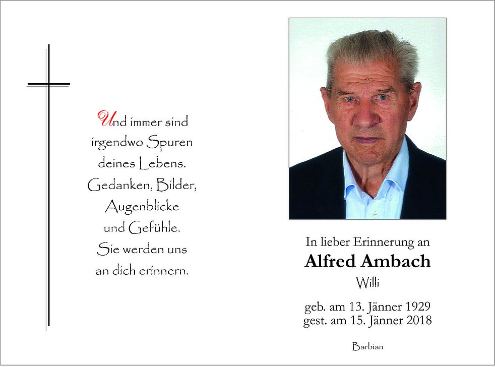 Wir begleiten unseren lieben Vater am Mittwoch, dem 17. Jänner, um 14.30 Uhr von der Friedhofskapelle ausgehend,
