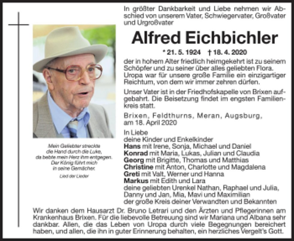 Brixen, Feldthurns, Meran, Augsburg, am 18. April 2020