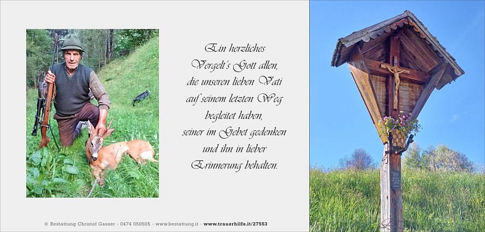 Anstelle von Blumen möge man für die Südtiroler Krebshilfe spenden.
