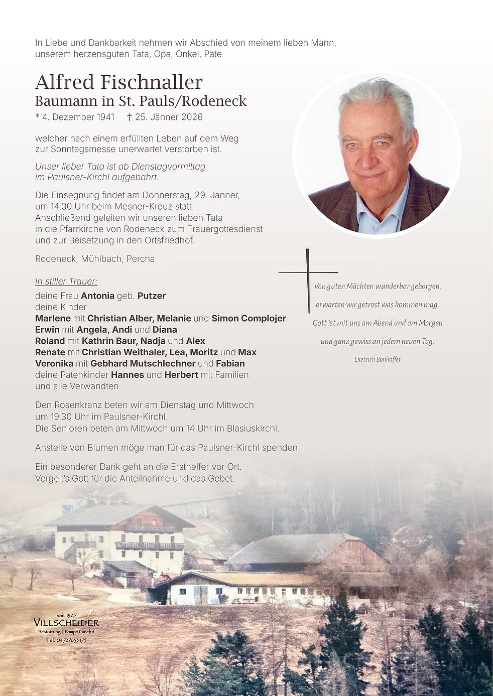 Mit großer Traurigkeit nehmen wir Abschied von unserem treuen Stammgast Alfred. Jeden Sonntag nach der Messe kam er für eine heiße Schokolade bei uns vorbei. An diesem Sonntag jedoch warteten wir vergeblich auf ihn Alfred ist auf dem Weg zur Kirche von uns gegangen.