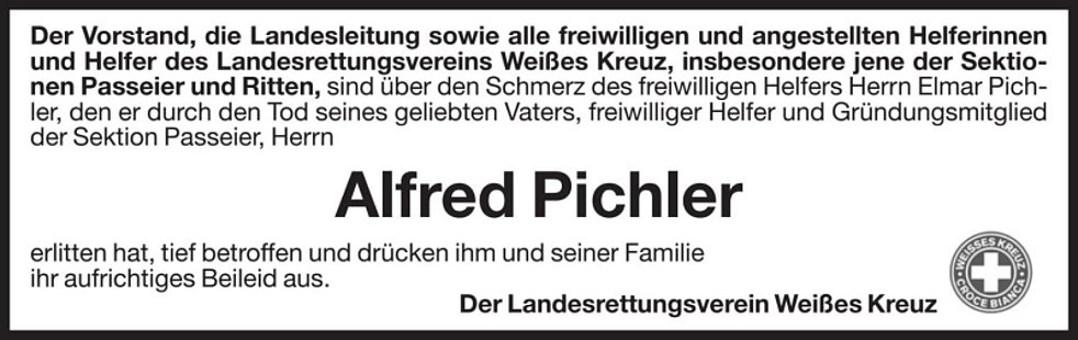 Ein besonderer Dank gilt allen, die unseren Alfred liebevoll begleitet und betreut haben, besonders dem Sprengel Passeier.