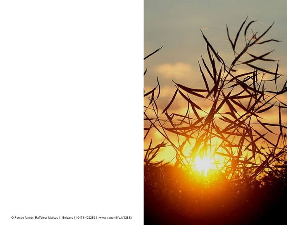 Un sentito ringraziamento a tutto il personale della casa di riposo Pilsenhof di Terlano per le amorevoli cure prestate e un ringraziamento particolare alla signora Brigitte.