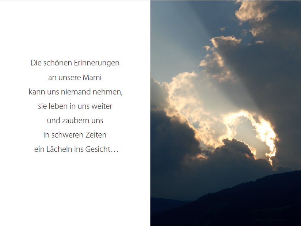 Statt Blumen auf das Grab zu legen, möge man für den Verein Kinderherz Südtirol (IBAN: IT10G0349311600000300035572) spenden.