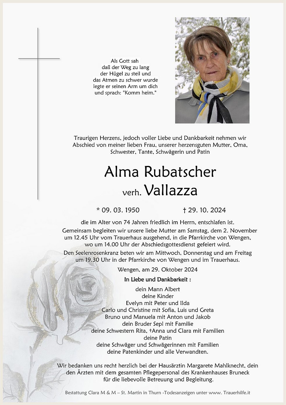 Begräbnisgottesdienst: 02.11. - 14:00 Uhr Wengen