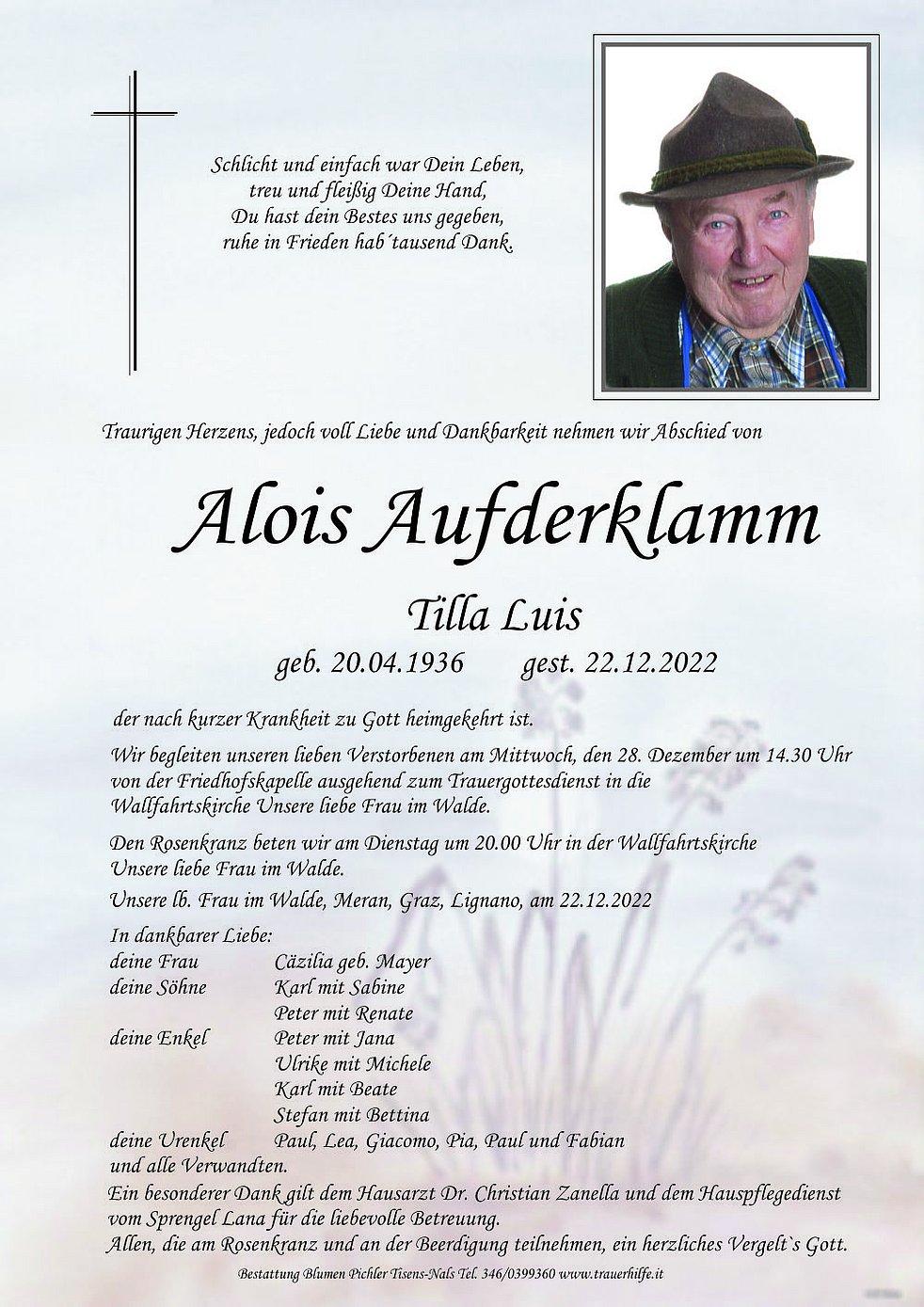 Wir begleiten unseren lieben Verstorbenen am Mittwoch, den 28. Dezember um 14.30 Uhr