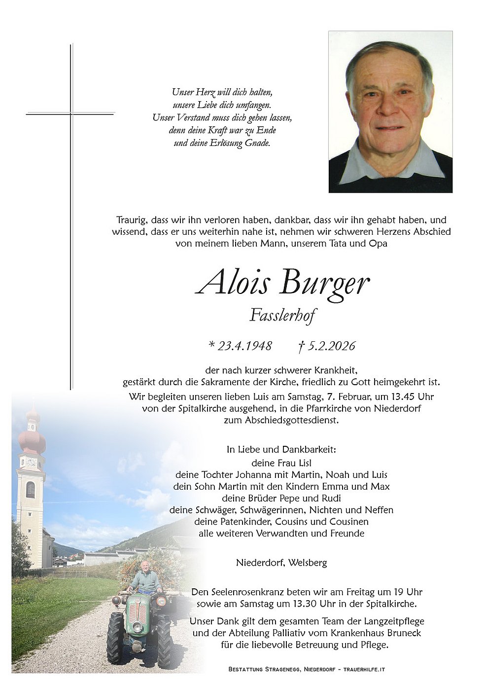 Begräbnisgottesdienst: 07.02. - 14:00 Uhr Niederdorf