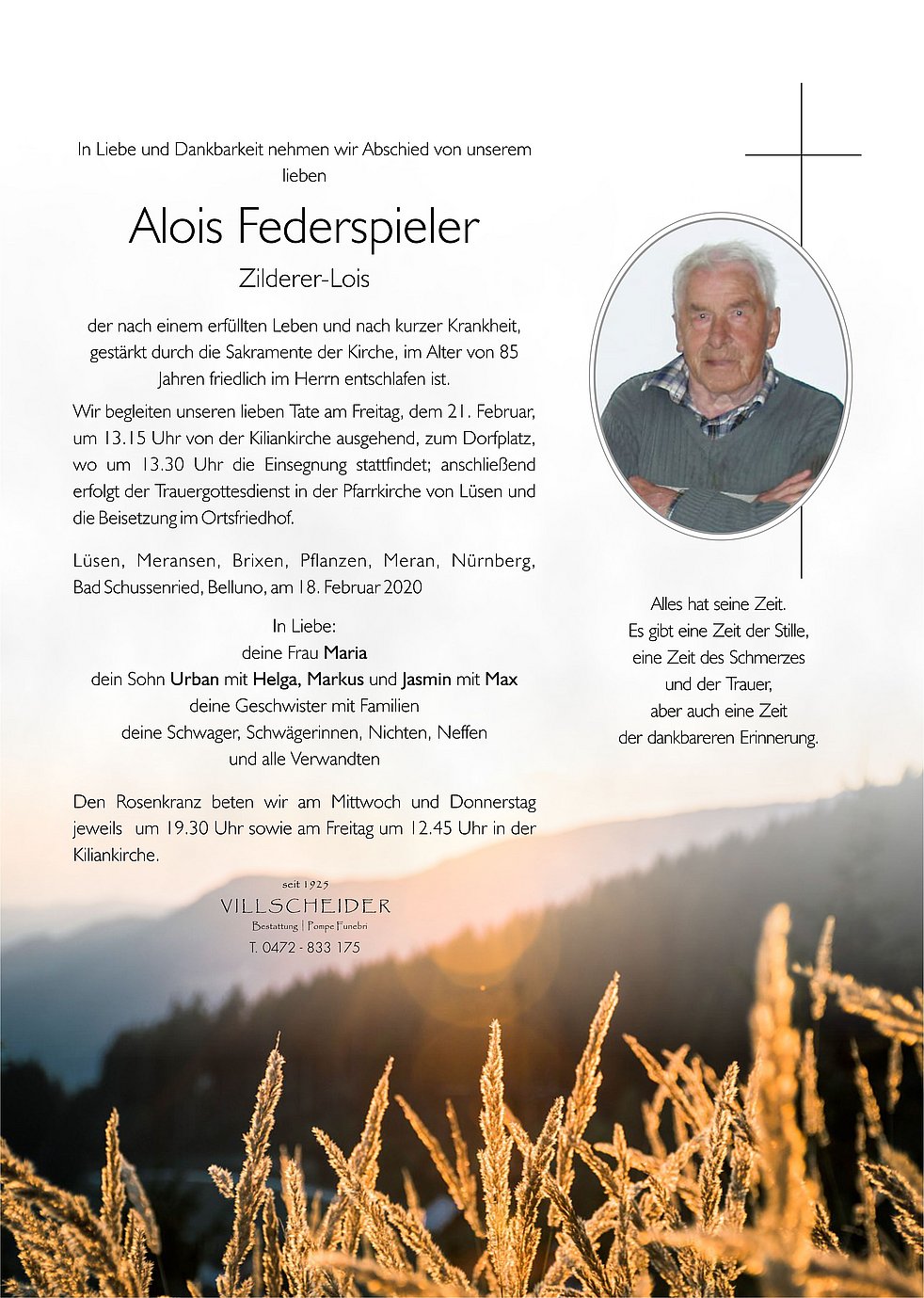 Wir haben Lois bei unseren früheren Urlauben in Lüsen als naturver-bundenen und aufrichtigen Menschen