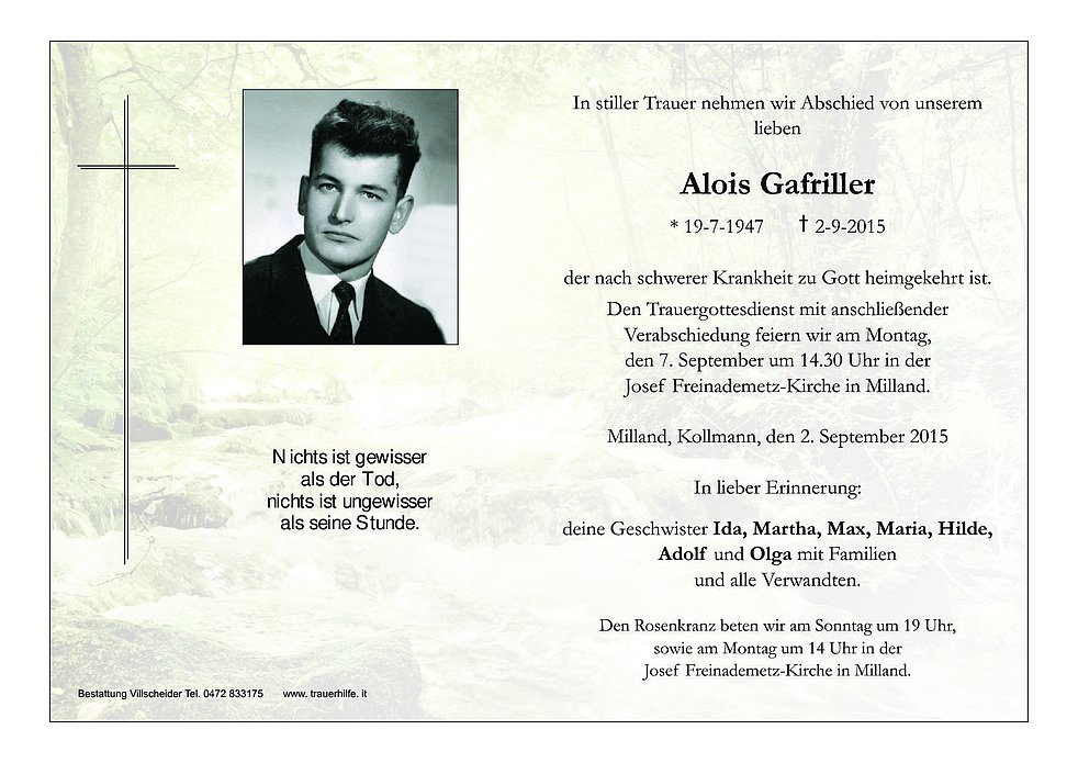 Den Trauergottesdienst mit anschließender Verabschiedung feiern wir am Montag,