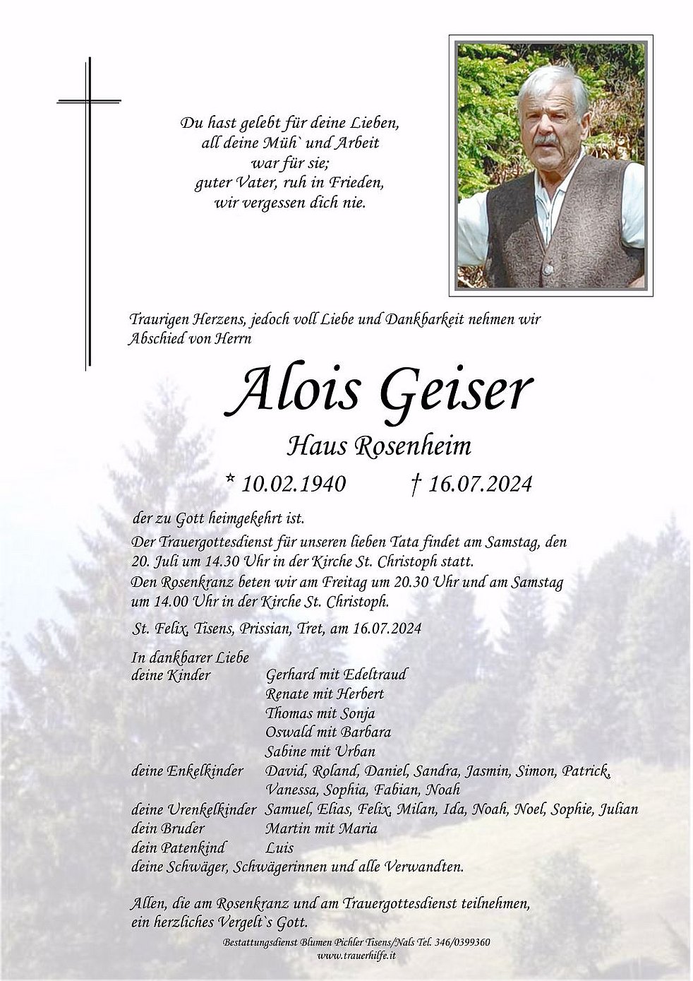 Begräbnisgottesdienst: 20.07. - 14:30 Uhr Kirche St. Christoph