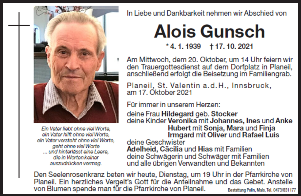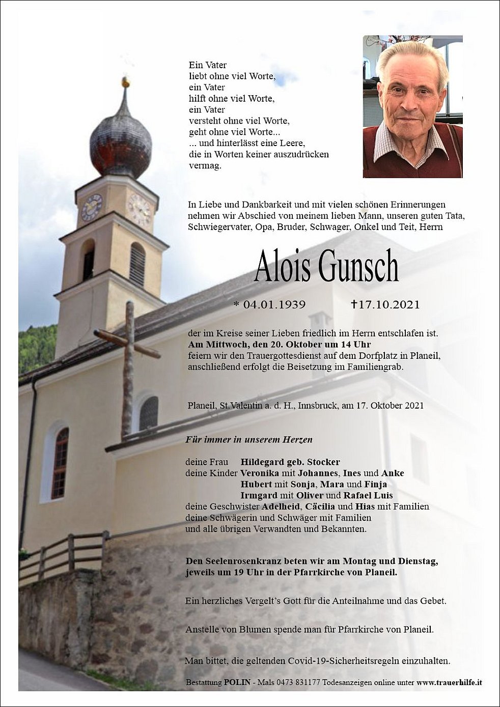 Anstelle von Blumen spende man für Pfarrkirche von Planeil.