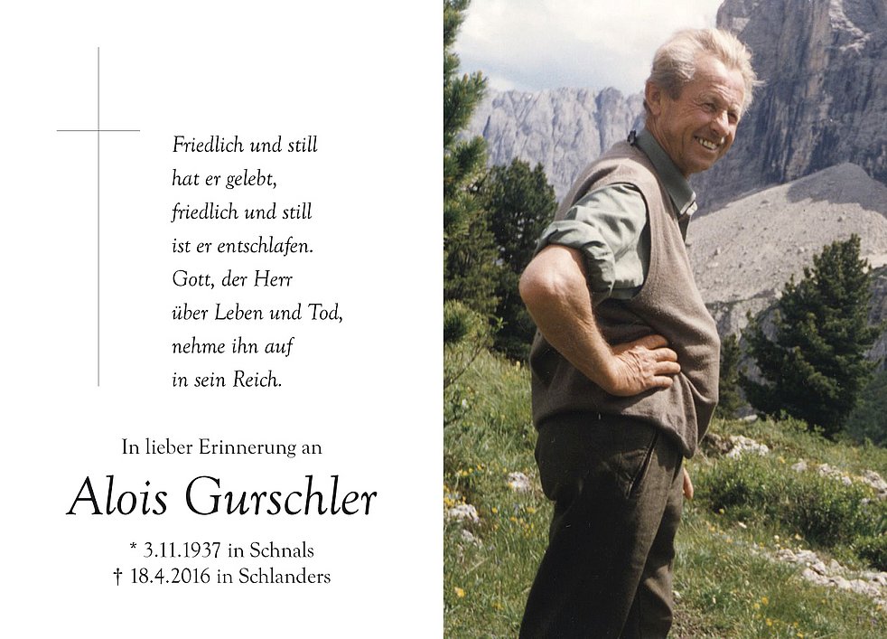* 3.11.1937 in Schnals † 18.4.2016 in Schlanders