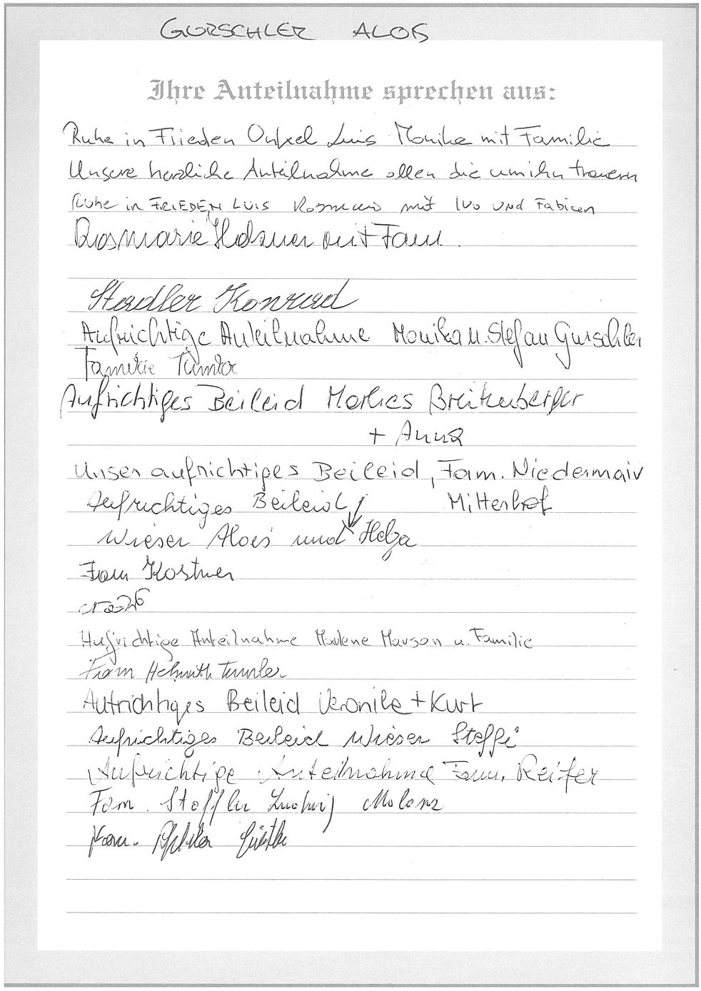 deine Geschwister Sepp, Franz, Tilla, Liesl, Karl, Tresl, Moidl, Florina, Norbert und Christl mit Familien