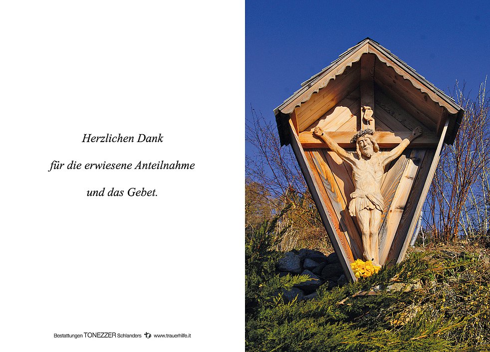Ein besonderer Dank gilt unserem Hausarzt Dr. Hansjörg Gluderer sowie dem Hauskrankenpflegedienst des Sprengels Mittelvinschgau für die liebevolle und fürsorgliche Betreuung.