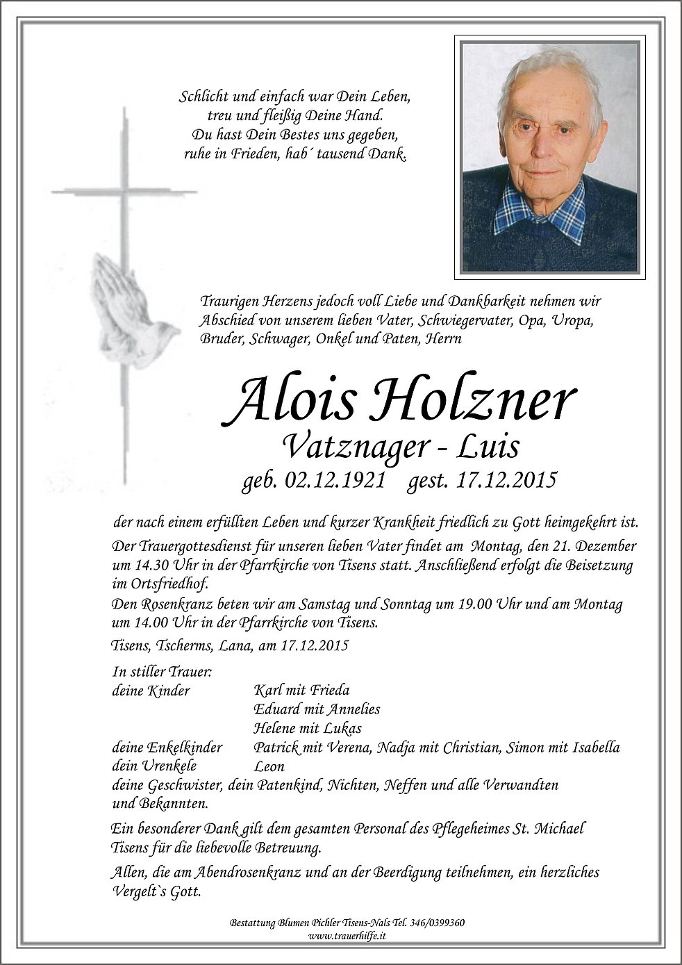 um 14.30 Uhr in der Pfarrkirche von Tisens statt. Anschließend erfolgt die Beisetzung