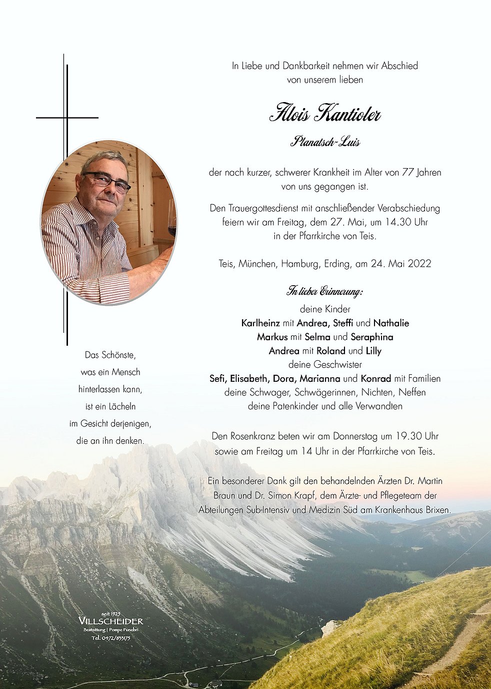 Trauerfeier: 27.05. - 14:30 Uhr Teis