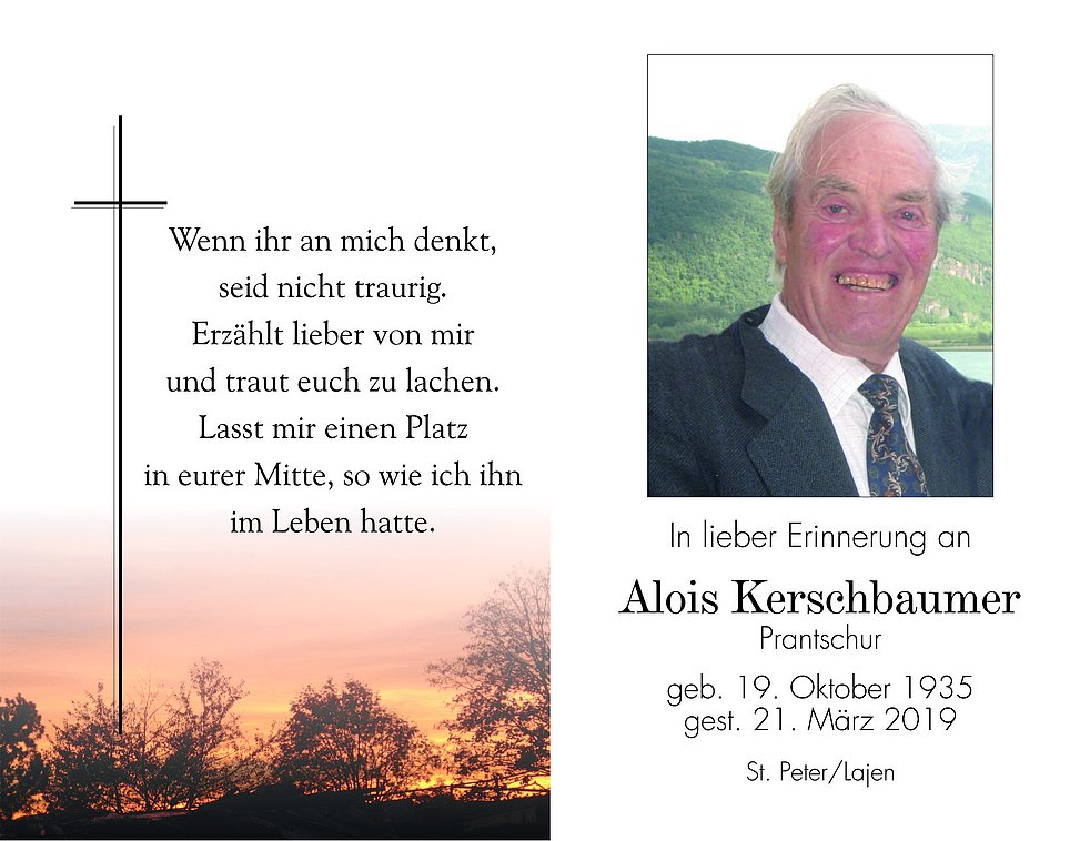 Begräbnisgottesdienst: 23.03. - 14:30 Uhr St. Peter/Lajen