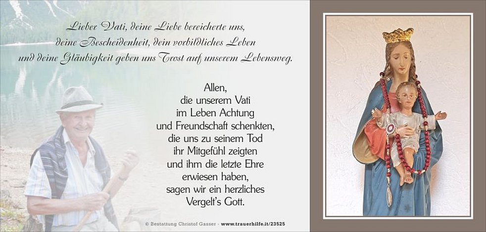 Allen, die an den Seelenrosenkränzen und an der Beerdigung teilnehmen, ein herzliches Vergelt’s Gott.