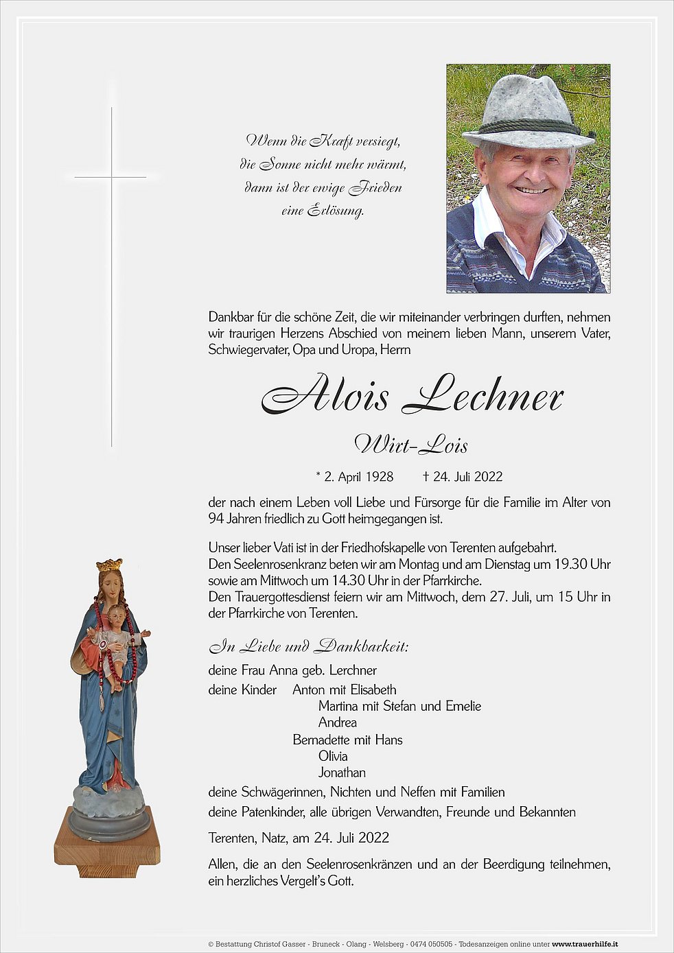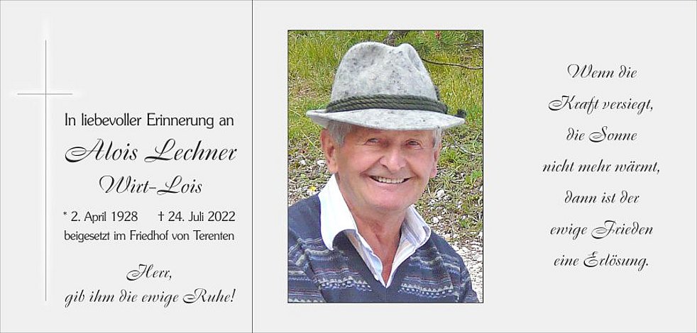 Den Trauergottesdienst feiern wir am Mittwoch, dem 27. Juli, um 15 Uhr in der Pfarrkirche von Terenten.