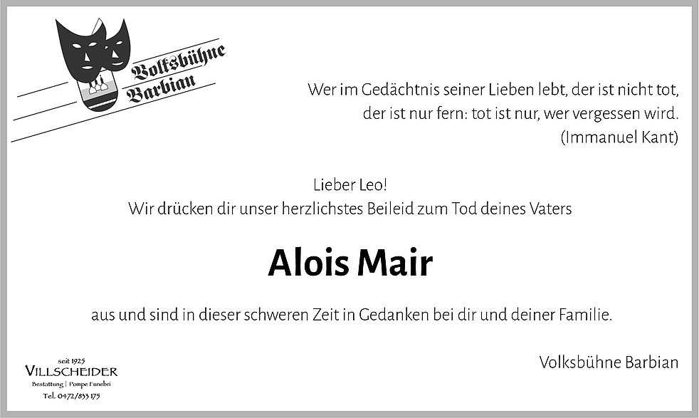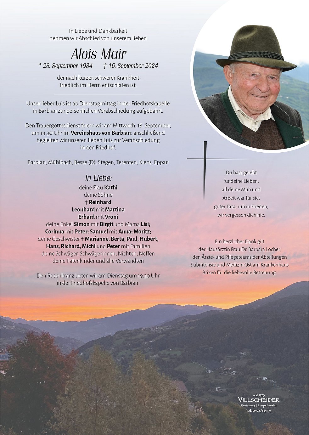 Trauerfeier: 18.09. - 14:30 Uhr Barbian