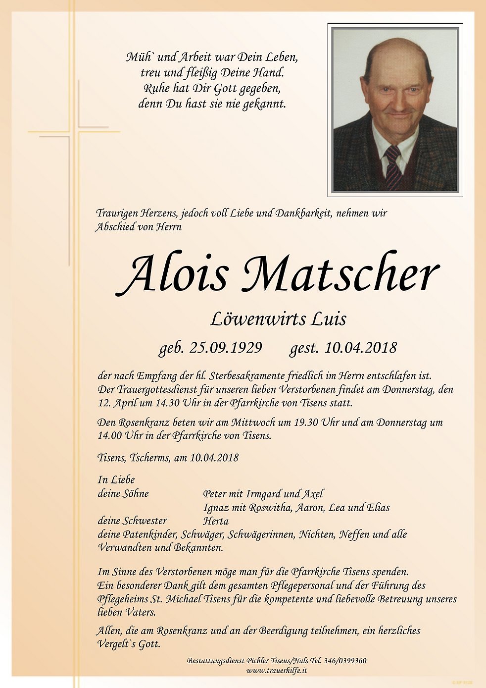 Im Sinne des Verstorbenen möge man für die Pfarrkirche Tisens spenden.
