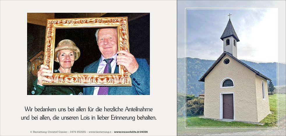 Vergelt’s Gott allen, die an den Seelenrosenkränzen und am Trauergottesdienst teilnehmen und unseren lieben Lois in guter Erinnerung behalten.