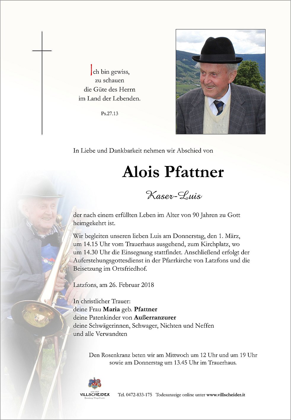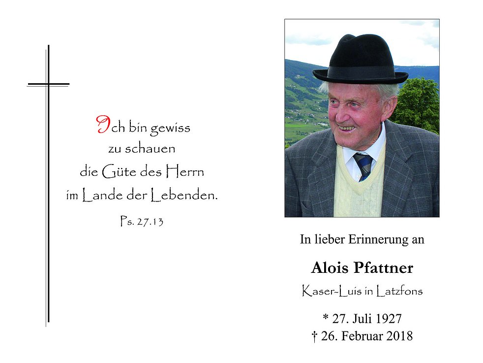um 14.30 Uhr die Einsegnung stattfindet. Anschließend erfolgt der Auferstehungsgottesdienst in der Pfarrkirche von Latzfons und die Beisetzung im Ortsfriedhof.