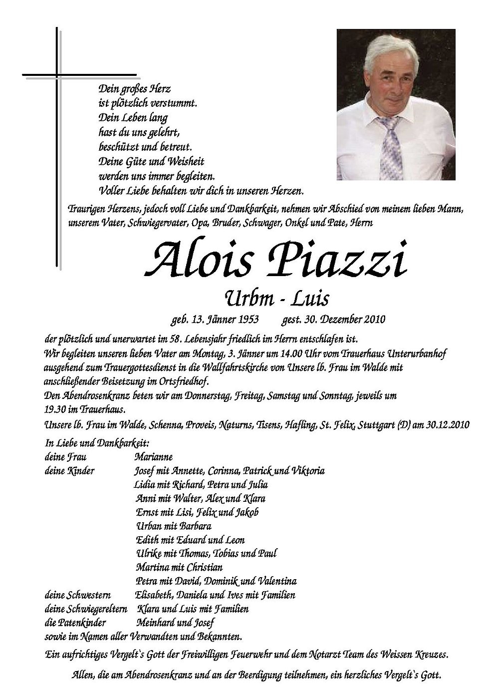 Wir begleiten unseren lieben Vater am Montag, 3. Jänner um 14.00 Uhr vom Trauerhaus Unterurbanhof