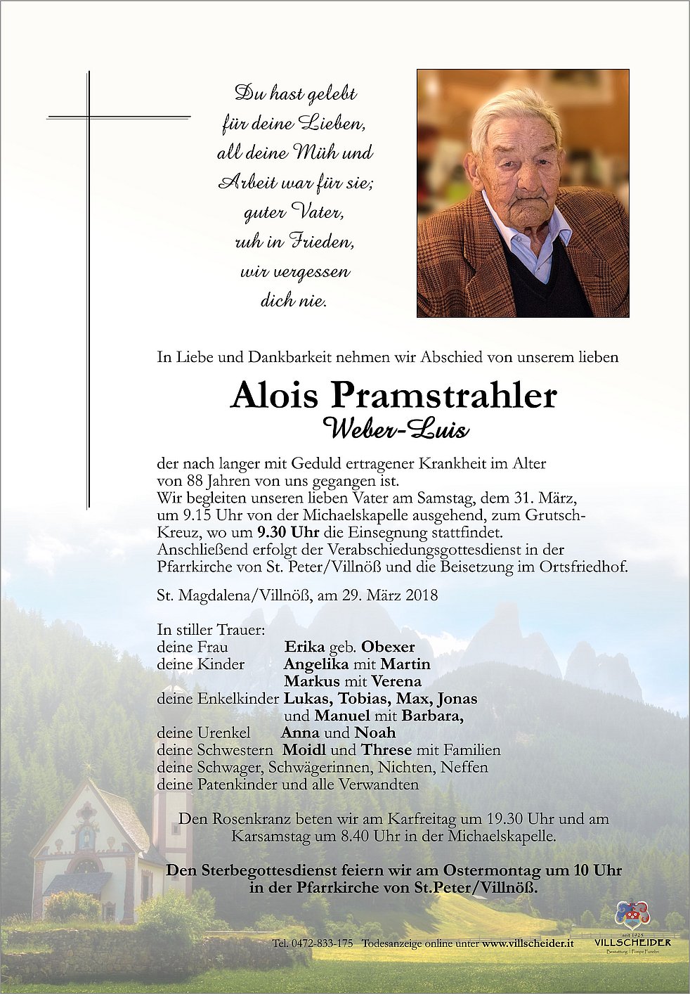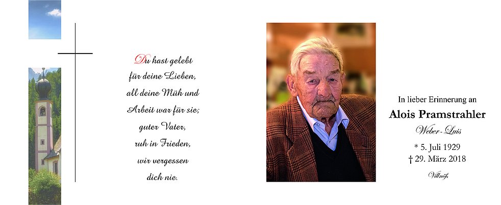 Den Sterbegottesdienst feiern wir am Ostermontag um 10 Uhr in der Pfarrkirche von St.Peter/Villnöß.