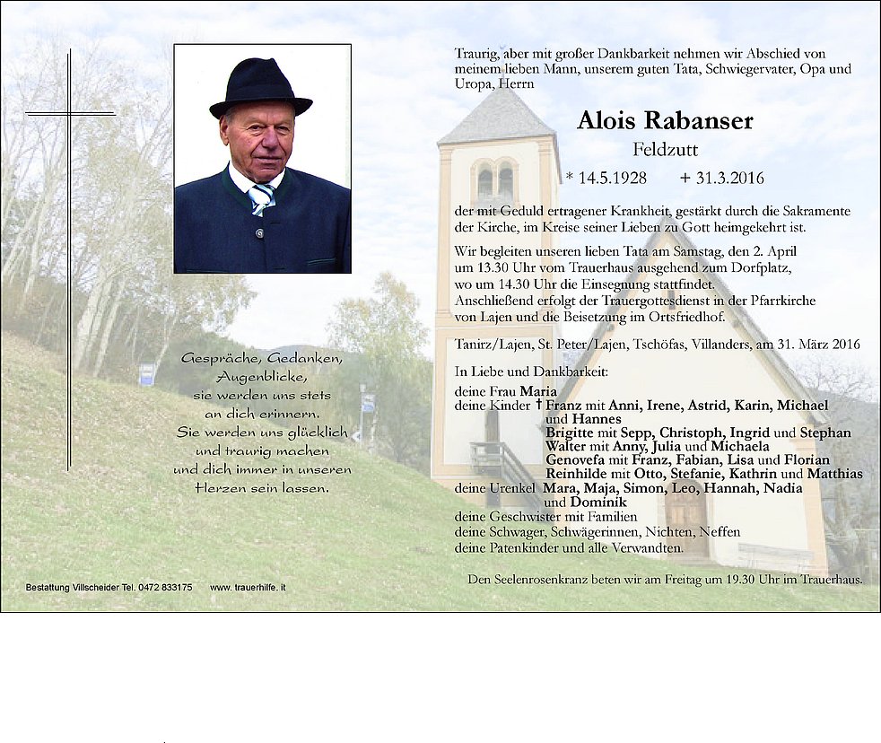 Wir begleiten unseren lieben Tata am Samstag, den 2. April