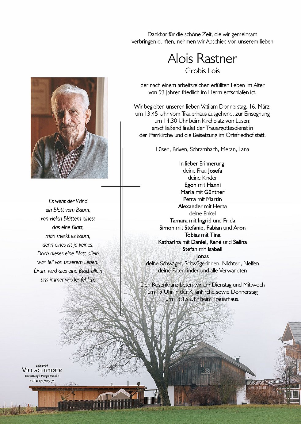 Liebe Josefa mit Familie, wir möchten euch unsere Aufrichtige Anteilnahme am Heimgang eures lieben Vatis ausdrücken,