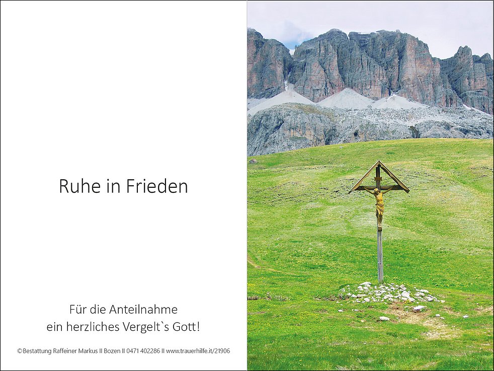 Die Beisetzung am Friedhof Bozen/Oberau erfolgt im engsten Familienkreis.