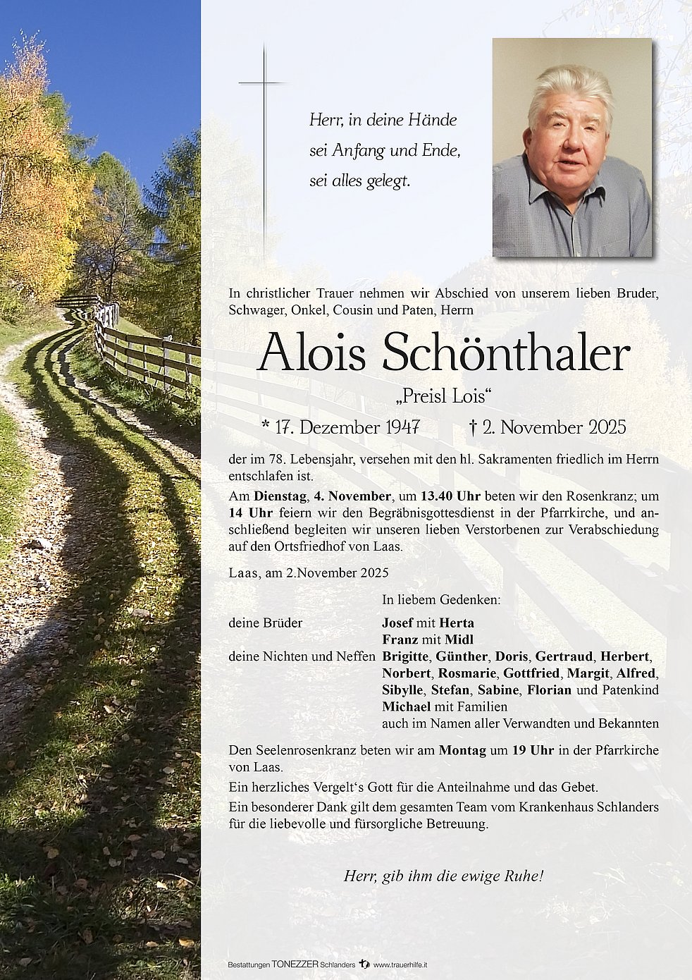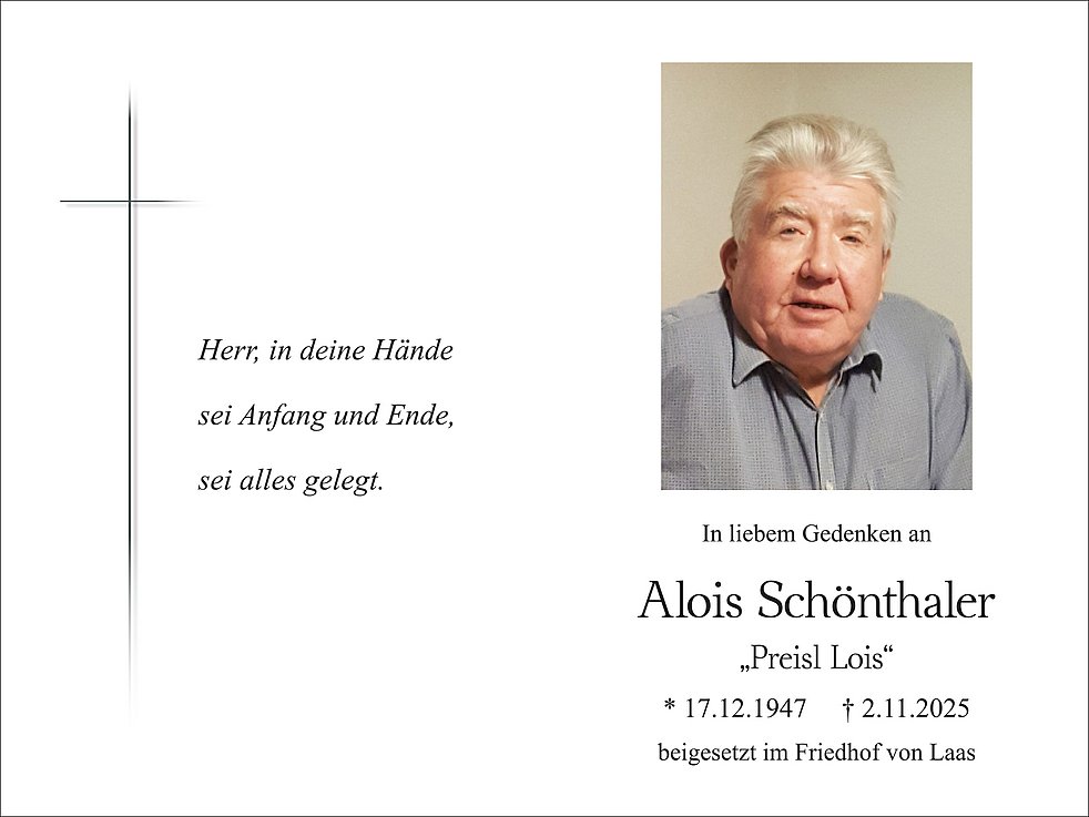 Begräbnisgottesdienst: 04.11. - 14:00 Uhr Pfarrkirche Laas