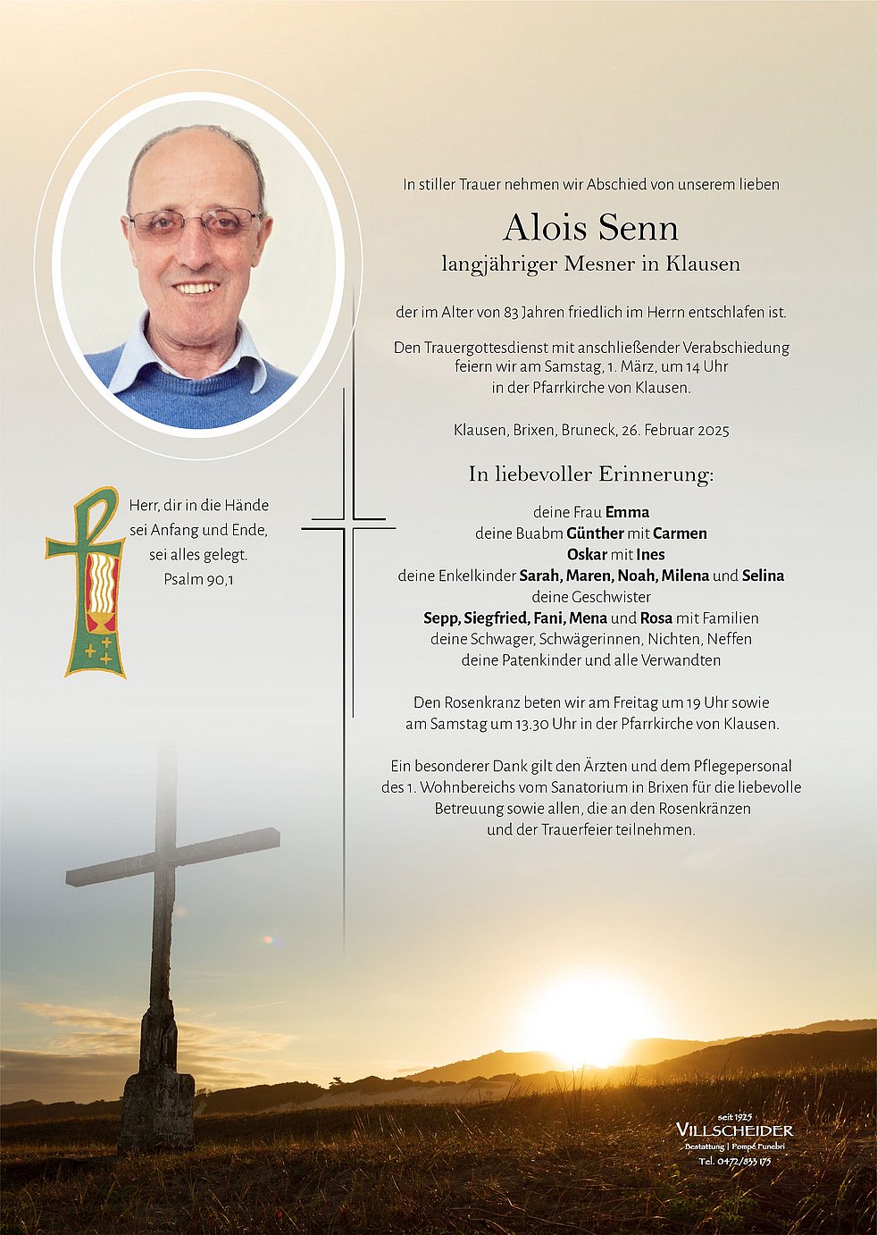 Begräbnisgottesdienst: 01.03. - 14:00 Uhr Klausen